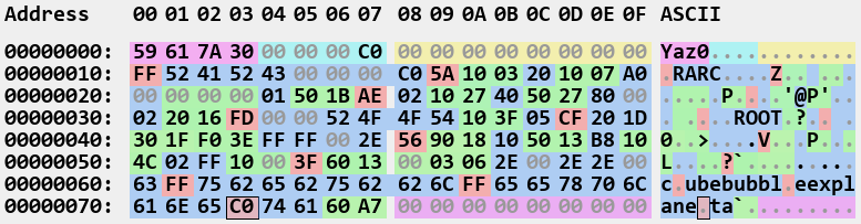 Archivo ObjectData/CubeBubbleExPlanetA.arc visto en ImHex